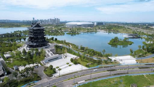 东安阁、图书馆、剧院、文化艺术中心……堪比一线的城市界面;东安湖公园、驿马河公园、龙泉驿欢乐田园三大生态IP,不仅是颜值担当,也是成都人周末遛娃打卡的好去处,不信你周末去看看!