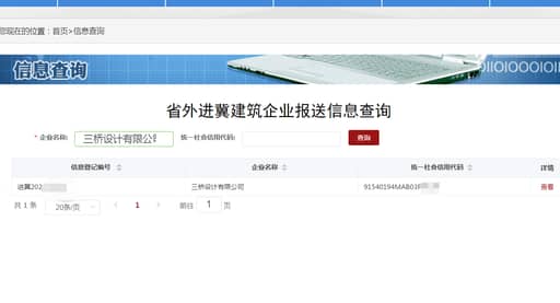 在2021年7月19日,在河北的备案传来了好消息:河北省政务网查询结果显示河北省住建厅已经发布了三桥设计院的备案公告,意味着本院在河北备案成功!